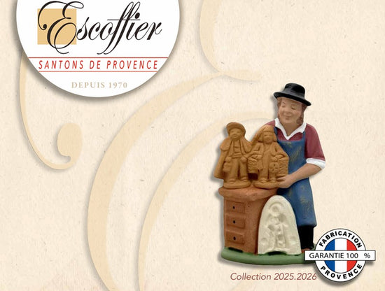 L’ensemble des collaborateurs de la famille Escoffier travaille à Aubagne et alentours dans l’authenticité de la création santonnière. Certifiée par le label Santons de Provence, la production Escoffier offre depuis trois générations la qualité constante à sa juste valeur : la valeur de la création et de la fabrication à la main, la valeur de gestes sûrs, précis, minutieux, jamais standardisés, par la grâce desquels chaque santon est unique.