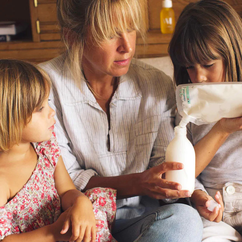 - Rechargeable grâce aux éco-recharges ultra légères (- 7 grammes soit un demi pot de yaourt) et permet de réduire ainsi sans effort de 70% votre consommation de plastique