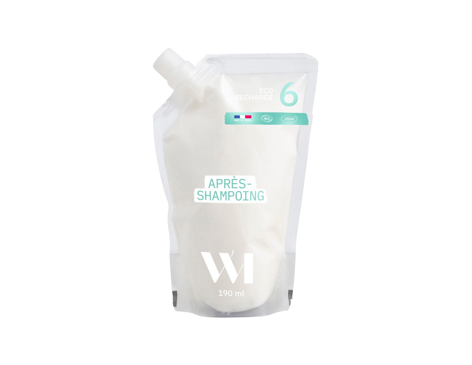 Une fois les cheveux propres et humides, appliquer deux à quatre pressions de l'après-shampoing sur la pointe de vos cheveux en fonction de leurs longueurs