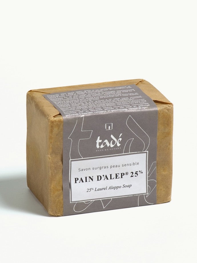 Authentique savon d'Alep Tadé, 25 % de laurier. Riche en oligoéléments et acides gras indispensables.