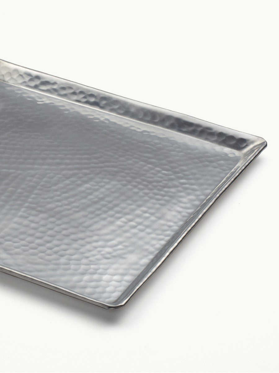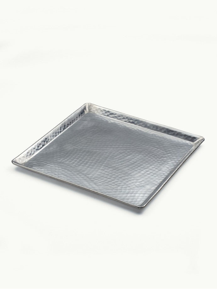 Plateau moyen en feuille d'aluminium argenté , 25 cm × 25 cm.