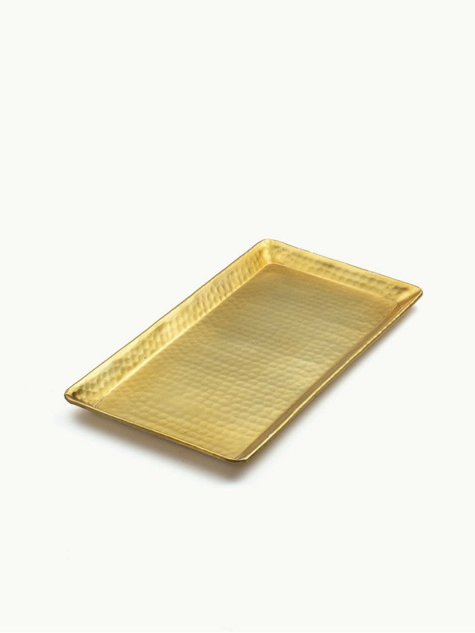 Plateau rectangle en laiton doré plaqué et martelé à la main, 25 cm × 13 cm.